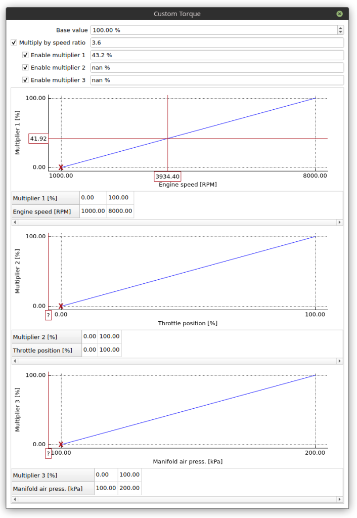 With this test, the torque of the absorbers can be controlled by any parameter you like. You can set it up to depend on the engine speed, boost pressure, throttle or any other parameter available in the software.